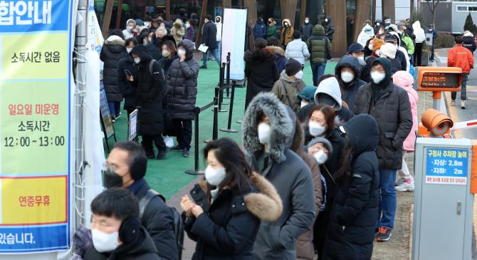 오미크론 변이 바이러스의 확산으로 코로나19 신규 확진자가 9만 명대를 돌파하며 역대 최다치를 기록했습니다.